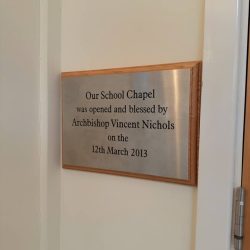 Our school chapel is a peaceful and sacred space at the heart of our community. Opened and blessed by Archbishop Vincent Nichols in 2013, it provides a quiet place for prayer, reflection and worship for pupils and staff throughout the year.