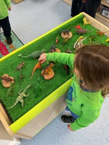 Our new theme is in fact ‘Megabeasts’, and the bucket of dinosaurs we found belongs to Harry from our key text: ‘Harry and the Bucketful of Dinosaurs’. We have already been sharing our own ideas and knowledge about dinosaurs – some of us have even visited museums to learn about them! We have also begun to create a dinosaur cave role play area.