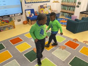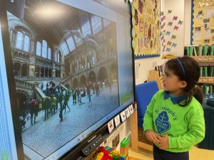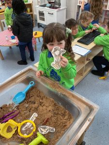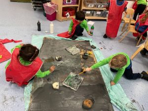 Nursery did a great job of settling after their half term break, and were excited to guess what their new theme could be. The biggest clue was the exciting discovery of some enormous footprints in our classrooms. We set about investigating them, and after some discussion we decided that they could belong to a dinosaur!