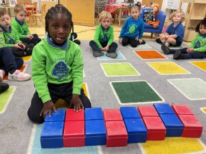 Our maths focus this week has been ‘repeating patterns’. The children did a wonderful job of continuing a 2-part repeating pattern using fireworks visuals, classroom resources and blocks large and small.