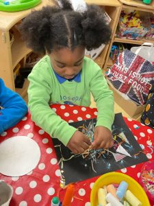 The children have also been sharing their experiences of autumnal celebrations and events. We have had lots of fun discussing firework displays, and we decided to capture our responses with a range of art activities, number rhymes and movement.