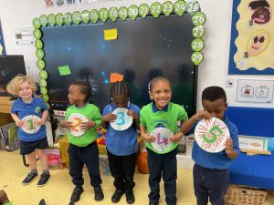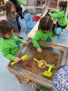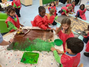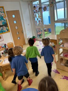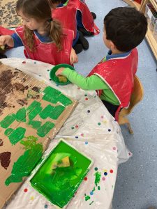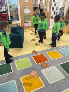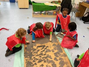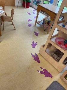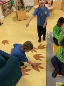 Nursery did a great job of settling after their half term break, and were excited to guess what their new theme could be. The biggest clue was the exciting discovery of some enormous footprints in our classrooms. We set about investigating them, and after some discussion we decided that they could belong to a dinosaur!