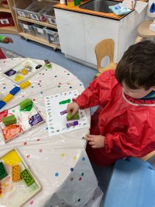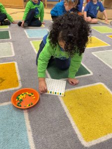 Our maths focus this week has been ‘repeating patterns’. The children did a wonderful job of continuing a 2-part repeating pattern using fireworks visuals, classroom resources and blocks large and small.