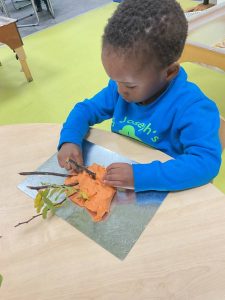 In our Religion lessons this week we have been learning to say Thank You to God for the World. We spoke about all the wonderful things that God created including the flowers, trees, the sky, the animals and the earth. The children used natural resources to make marks in playdough, they created their own art work using pens and pencils to say what they thanked God for and we went outside to see what we could spot that God had created and to say Thank You,