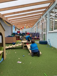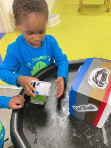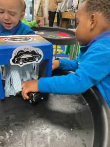 The children showed an interest in washing the cars, so we created our own Little Gems Car wash. The children had a great time washing the cars and pushing it through the car wash.