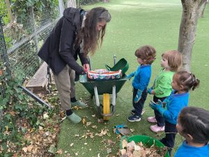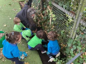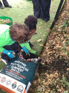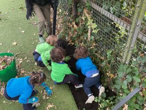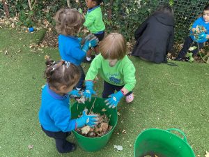 We did some gardening with our Environmental Teacher, the children helped clear the leaves away before helping to add the soil and then planted the bulbs.