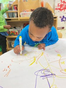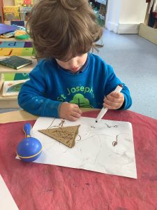 We have been exploring how we can make marks using large movements on big pieces of paper.