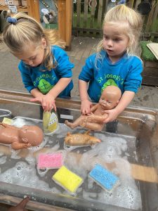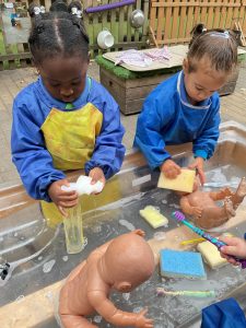 This week in Pre-Nursery we have continued our learning of our ‘All About Me’ theme. We have been learning how we have changed and grown since we were little looking at pictures of us when we were babies. The children have enjoyed looking after the dolls in Pre-Nursery washing them, brushing the dolls teeth and drying them.