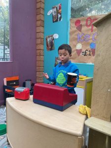 In Opal class the children have been enjoying their newly created ‘Ice Cream Shop’ which was designed by the children through their interests.