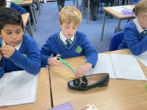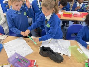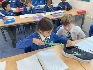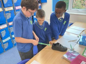 This week in Year 5, our young scientists have been diving into the fascinating world of forces – with a special focus on friction. To bring this concept to life, the students took part in a fun and hands-on experiment using Newton meters. Their mission? To find out how much force it takes to move different types and styles of shoes across a table, and what that tells us about the friction each shoe produces. The idea was simple: the more force required to move the shoe (as shown on the Newton meter), the greater the friction between the shoe and the table. On the other hand, if only a small amount of force was needed, that meant less friction was being generated. The children loved testing all sorts of shoes – from trainers to school shoes, boots to sandals – and made careful observations and predictions before recording their results. It was fantastic to see so much enthusiasm and curiosity in the classroom. The students really enjoyed discovering how the texture and material of a shoe’s sole can affect how easily it moves. It was a great way to apply scientific thinking in a practical and engaging way!