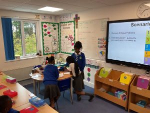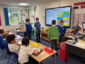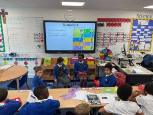 In Religion this week, Year 5 had a fun and engaging lesson all about the Ten Commandments! Students worked in small groups to act out different scenarios that either followed or broke one of the commandments. Each group performed their short drama in front of the class, using their creativity and teamwork to bring their scenario to life. After each performance, the rest of the class had to guess which commandment was being shown. Everyone enjoyed the activity and learned more about how the Ten Commandments can guide us in making good choices in our everyday lives.