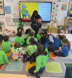 A real highlight of the week was when two lovely mummies came in with their babies to talk to us about what it’s like to have a new baby, just like Zaza does in the story. The children listened so carefully and asked some very thoughtful questions. A big thank you to those mums for visiting us!