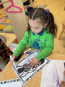 This week in Nursery, we’ve been diving into the wonderful story Zaza’s Baby Brother! The children absolutely loved the book and were full of excitement as we explored all the fun activities connected to it. One of our favourite creative tasks was making zebra faces using a variety of materials to create the stripes. The children used card, tissue paper, and pipe cleaners to design their zebras, each one unique and full of character! We also had great fun acting out the story with our friends – everyone enjoyed taking on the different roles and bringing the story to life.