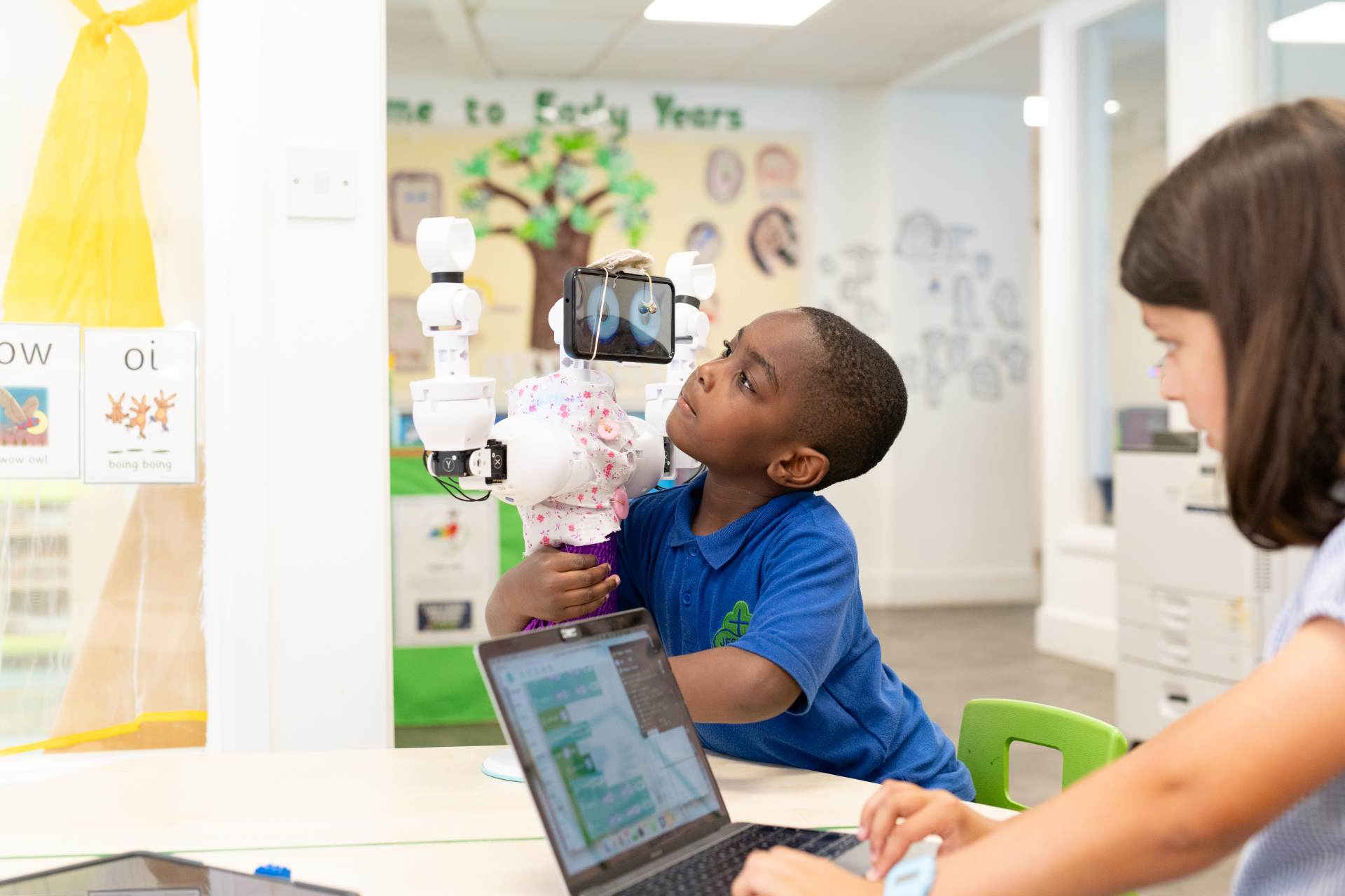From the moment the children enter the EYFS setting they have the opportunity to use a range of technology, from using iPads to record their work, to scanning QR codes to listen to stories in a range of languages. The pupils in EYFS also have access to talking clipboards, and talking story books which enable them to listen to instructions from the teacher, as well as recording their own ideas/ stories to aid with sentence writing. We also provide pupils with defunct IT equipment to encourage them to construct their own imaginative role-play scenarios. Pupils in EYFS are also given the opportunity to use remote control toys, and programmable toys to enhance multiple areas of the curriculum. Through exposing pupils in EYFS to a range of digital technology, we are ensuring they understand the world around them whilst ensuring that they are building skills to aid them in key stage learning.