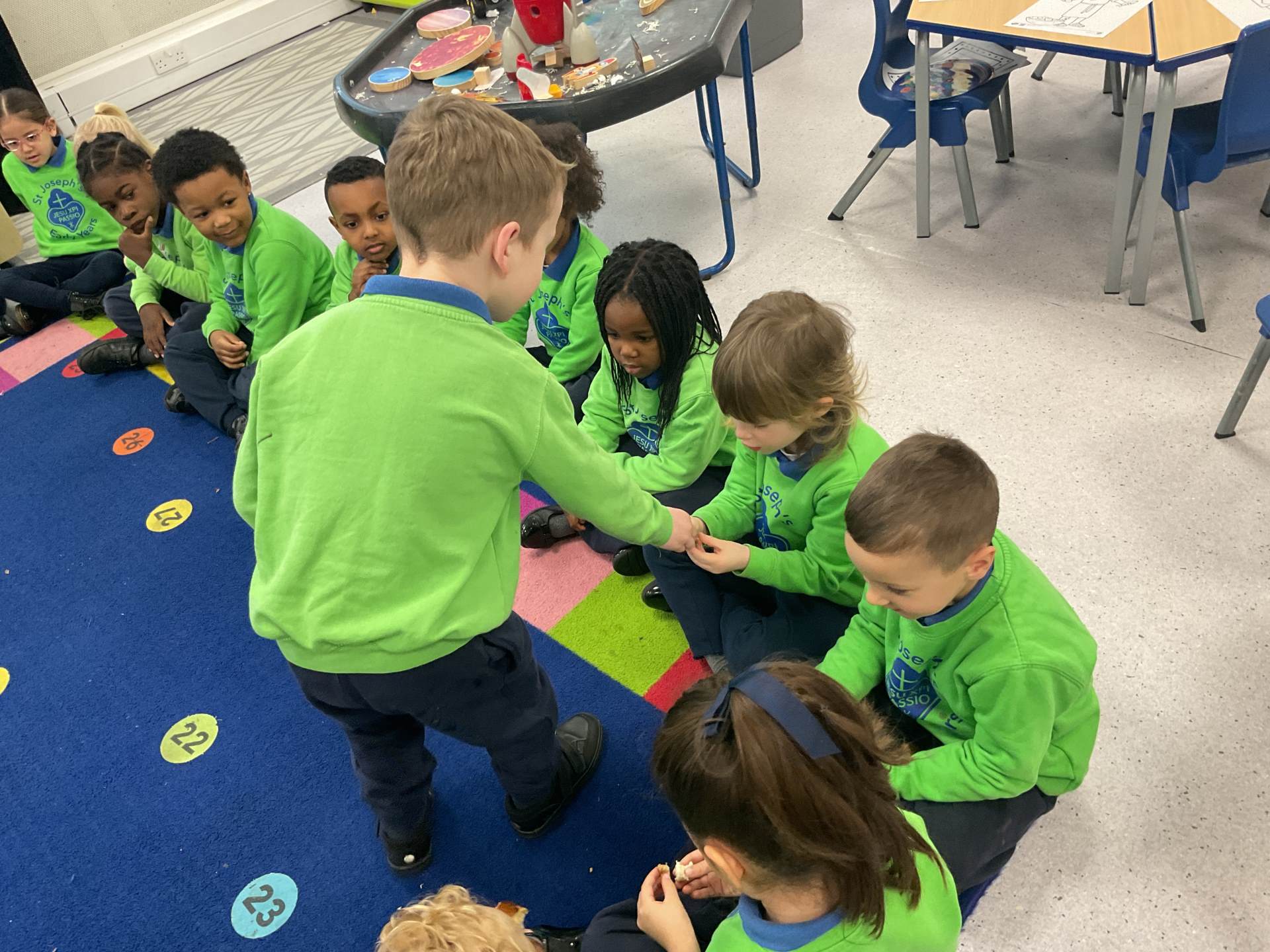 Through discussion and reflection, the children understood that both stories teach us about sharing, gratitude and thinking of others before ourselves. They also began to make links to the Eucharist and why bread is such an important symbol for Christians.