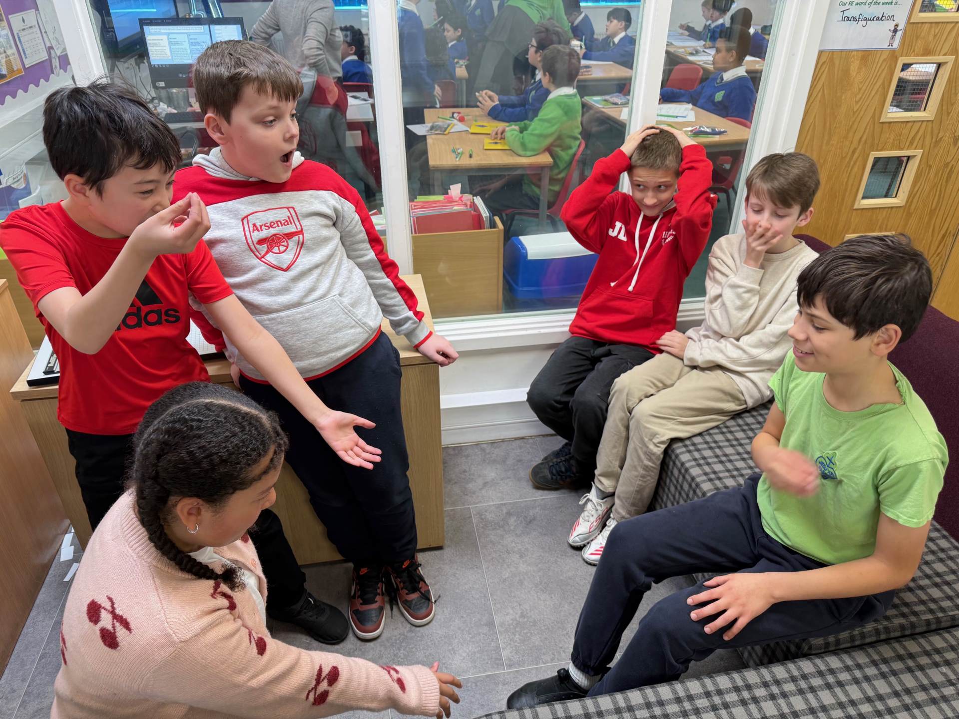 In RE this week, Year 5 pupils explored the Beatitudes and the Great Commandment through an interactive role-play activity. The lesson began by revisiting the Great Commandment, loving God and loving others, which was presented as a rule for life that links all of the Beatitudes together. Pupils then worked in groups to role-play a TV show based on real-life situations such as including someone who is left out, resolving conflict peacefully, or showing kindness in difficult moments. Each group performed their scene and the class discussed which Beatitude was being shown and how the characters were following the Great Commandment, helping pupils make clear connections between Jesus’ teachings and everyday choices.