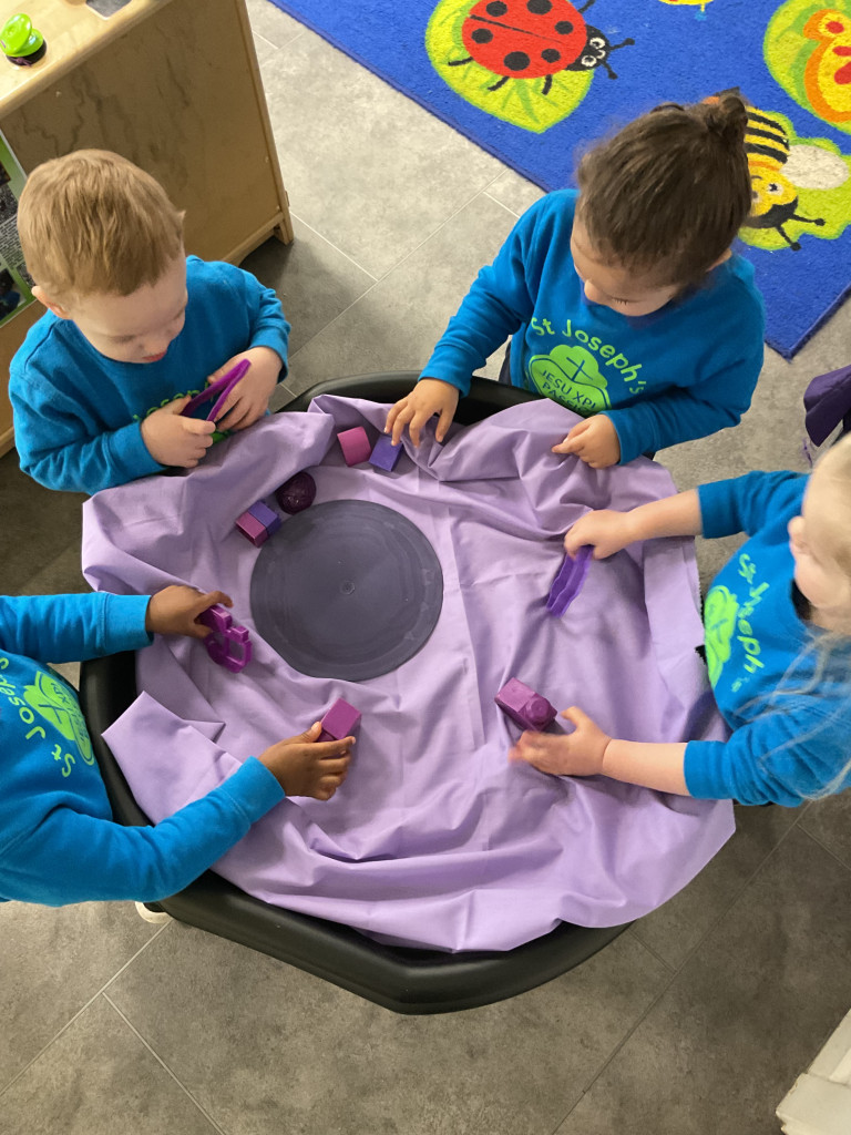 Using the props from the lesson, the children explored the items on the carpet while retelling the story through play.