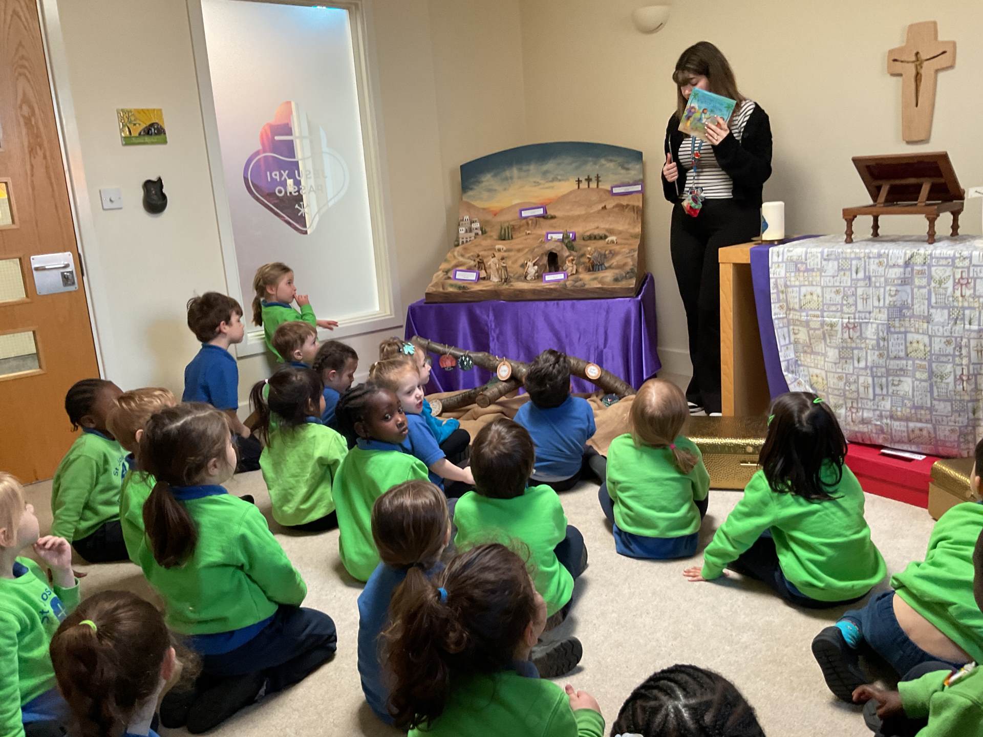 This week, Year 2 were very lucky to welcome Father George, our parish priest, who visited each of the classes to share a special lesson with us. Father George helped the children think about the season of spring and the changes we can see in the world around us, such as flowers beginning to bloom, days becoming brighter and new life appearing in nature. He explained how these signs of new life mirror what is happening in the Church’s liturgical year.