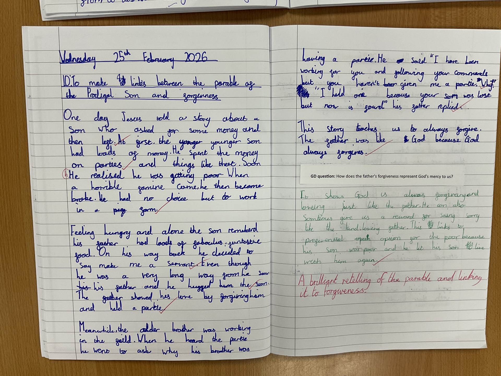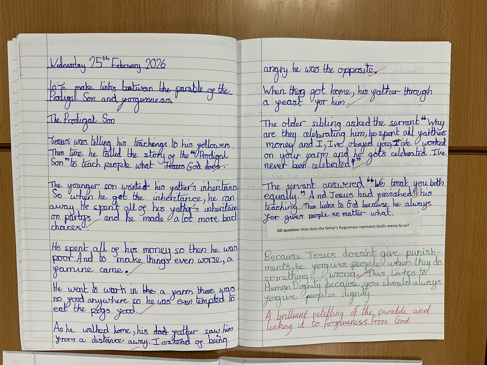 Our second lesson focused on St Francis of Assisi and linked to Pope Leo’s 2026 Franciscan Jubilee Year. We explored whether St Francis’ teachings might be even more important today than when he lived 800 years ago. We connected his values of caring for the poor, loving nature and living simply to modern world issues such as war, fast fashion, climate change and the gap between rich and poor communities. The class had some excellent discussions and pupils wrote an extended essay on Chromebooks, explaining how St Francis’ message about caring for others and the planet is still very important today.