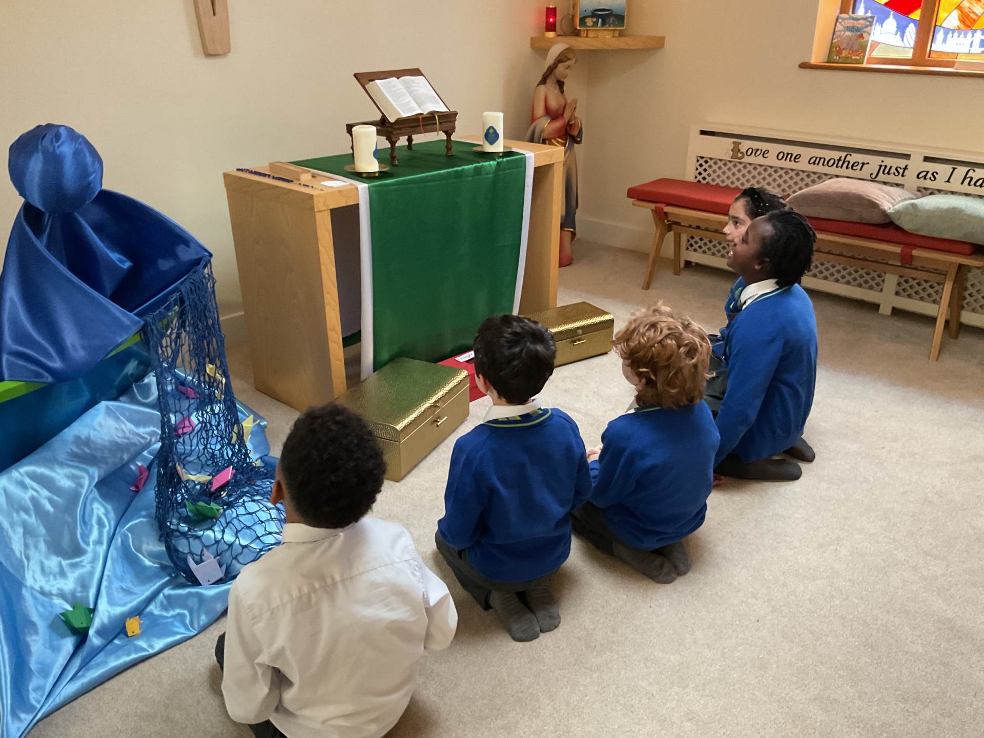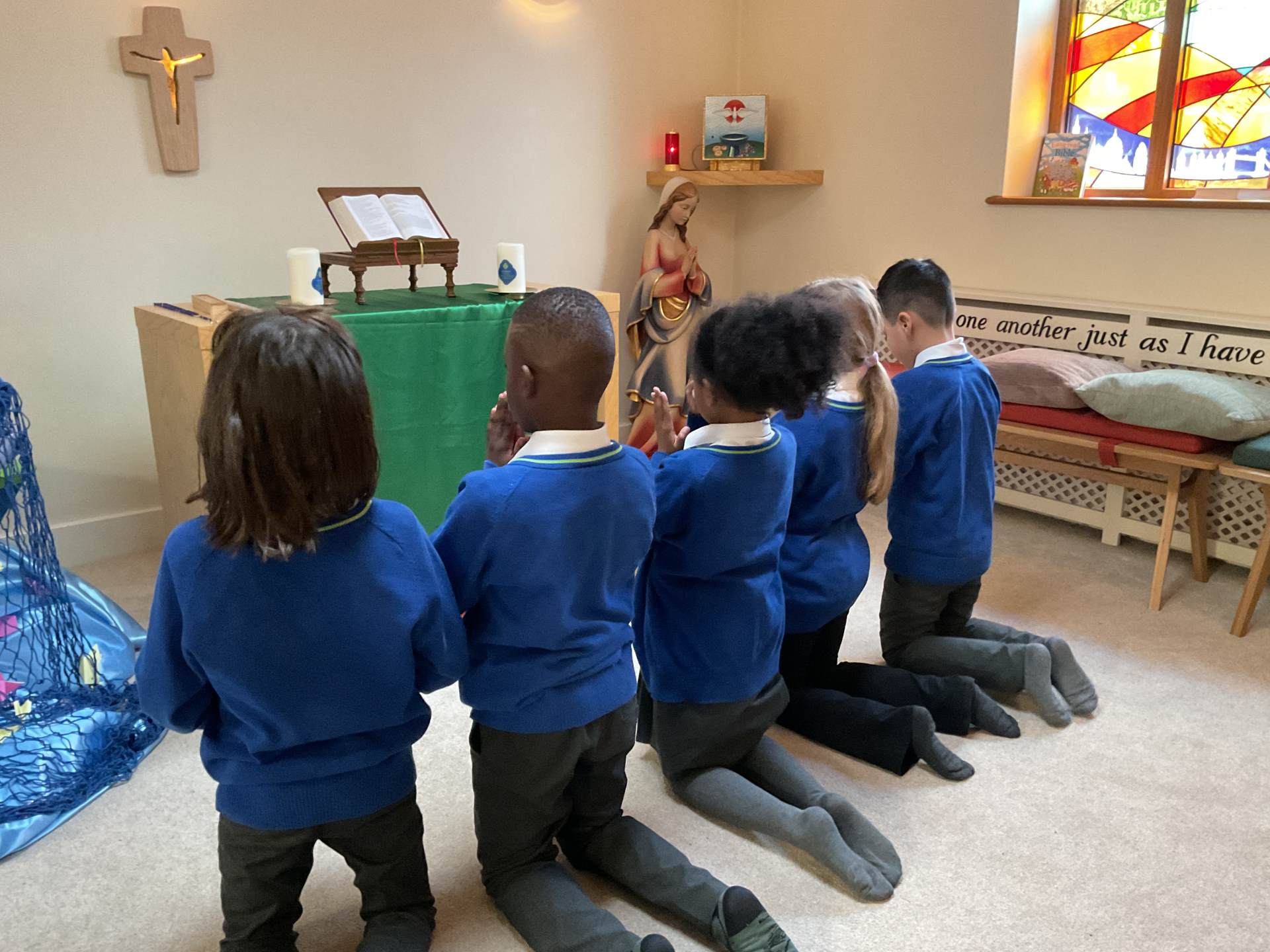 This week, we visited our chapel for a special time of reflection. The peaceful space helped us to think carefully about the words of the Our Father. We took part in a reflective reading of the prayer, pausing after each line to talk about what it means and how it helps us to build God’s Kingdom.