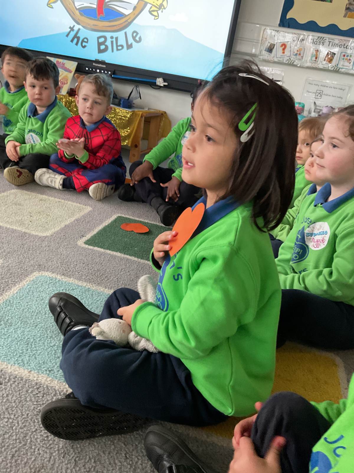 We listened to stories about how Jesus showed love through his actions, especially by helping those who were poor, hungry, sick, or lonely. Through these examples, we were reminded that Jesus teaches us how to love others and that Christians believe we are called to follow his example in our everyday lives.