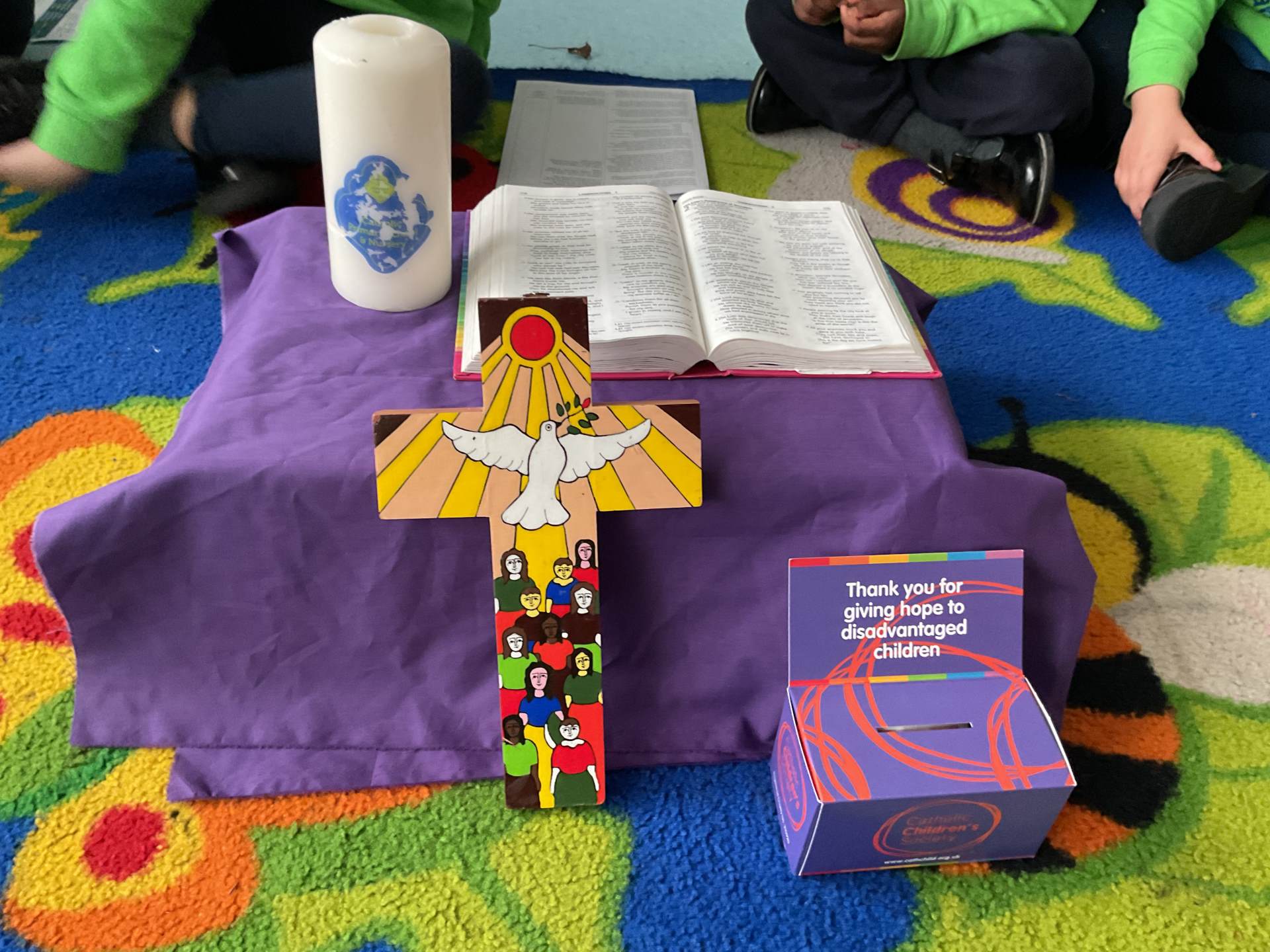 This week Nursery have been working on understanding Lent through caring actions and kindness. We reminded the children that Christians follow Jesus by showing love and care to everyone. The children were shown the new purple cloth, and remembered the one we saw during Advent. We explained purple is often the colour used when we are getting ready for something. This time we are getting ready for Easter – and that time has a special name: Lent. We explained that Lent is a time when all Christians try their best to be caring and kind like Jesus. We learnt the song - ‘Helping hands’