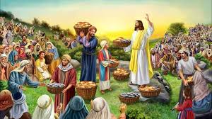 Jesus gives thanks before sharing the food.