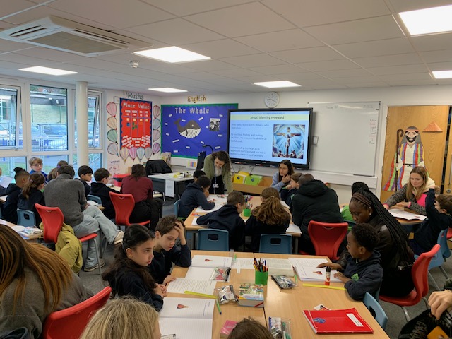 Our second lesson focused on Matthew 16:13–26, where Peter professes his faith in Jesus as the Messiah. The children reflected on how Jesus’ words and actions revealed his true identity and how his leadership was rooted in service rather than power. Through mind maps, they explored how Jesus expressed his identity using a range of different words. This lesson was particularly special as it was our RE Open Morning. Parents and guardians joined us in the classroom and learned alongside the children, supporting deeper thinking and thoughtful discussion. Together, they reflected on their favourite ways Jesus expressed his identity, creating a meaningful shared learning experience. It was wonderful to see our community come together to explore faith, leadership and service.