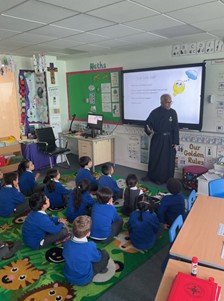 This week, Year 2 were very lucky to welcome Father George, our parish priest, who visited each of the classes to share a special lesson with us.