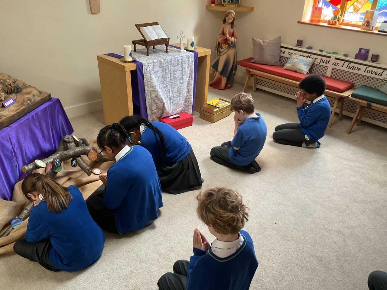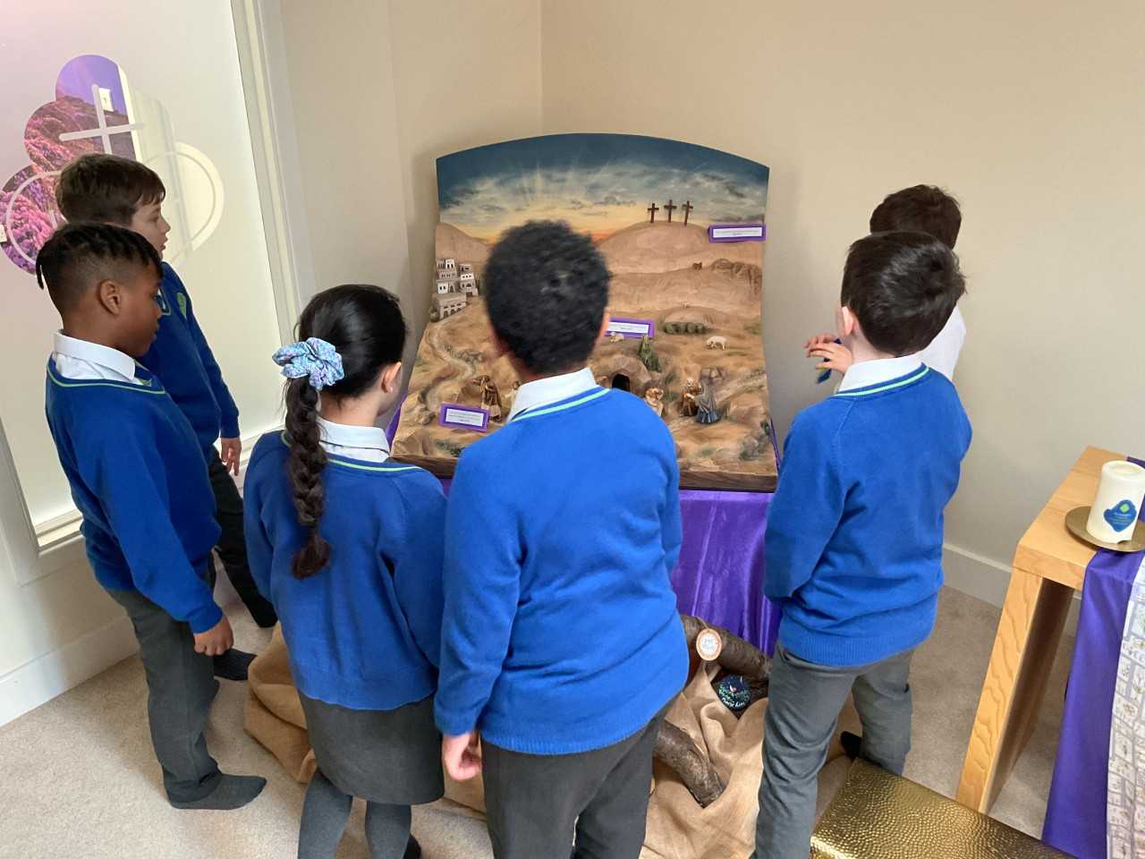 As part of our preparation for Holy Week and Easter, Year 4 also had an opportunity to visit our school chapel this week. In the chapel, the children spent listening to the Easter story and viewing our beautiful models of The Road to Emmaus, The Crucifixion and The Empty Tomb. They also had some prayerful reflection time as they looked at the Stations of the Cross and thought about Christ’s sacrifice. This was a meaningful opportunity for the children to connect their learning with prayer, allowing them to quietly reflect on the journey of Holy Week.