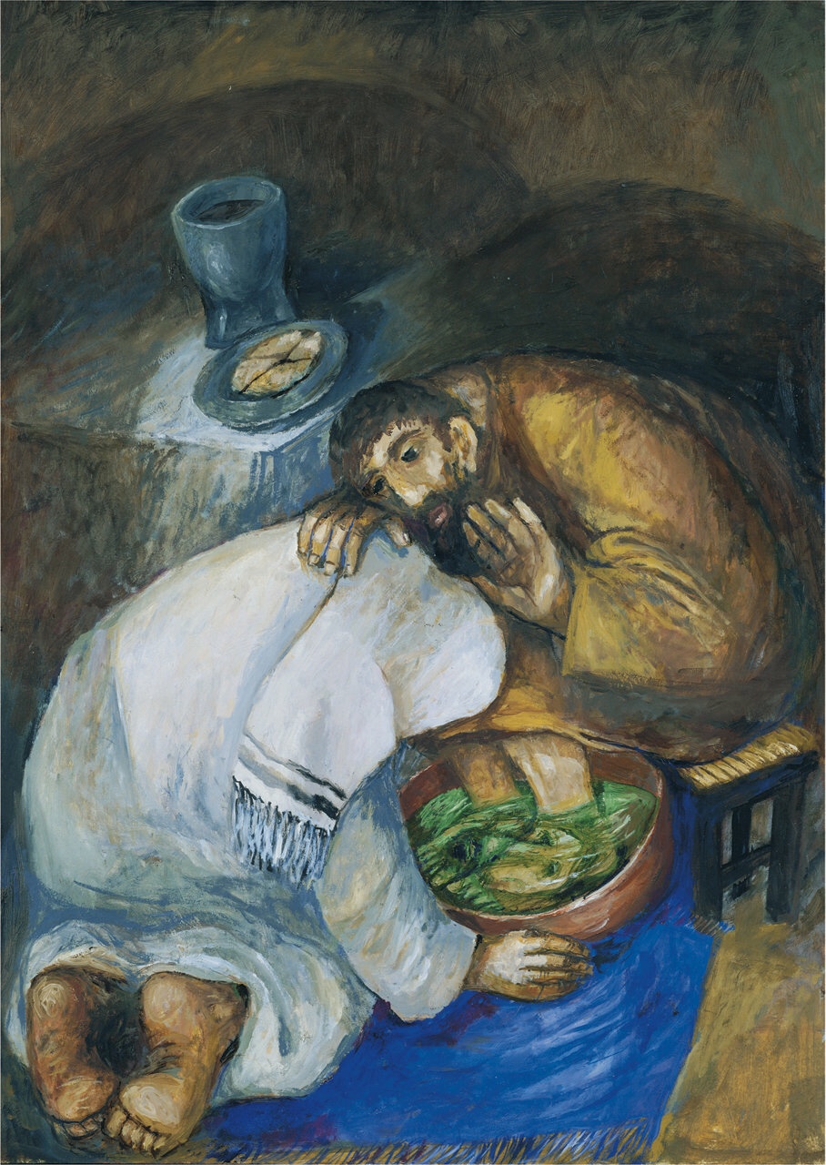 In our second lesson, we looked closely at a painting by the German artist Sieger Köder called The Washing of Feet. This artwork shows the moment when Jesus washed the feet of his disciples. We spent time observing the painting carefully and discussing questions such as: